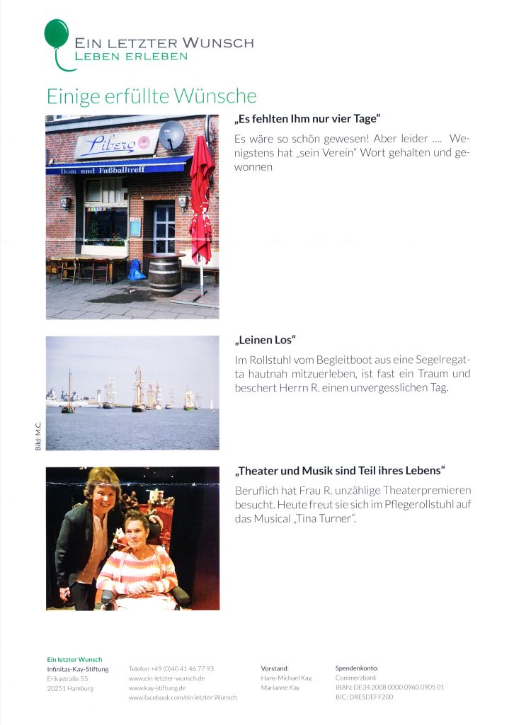 Eine karitative Organisation, die in diesem Jahr von den Schülern ausgewählt wurde, ist ein Projekt von der Infinitas-Kay-Stiftung „Ein letzter Wunsch“.