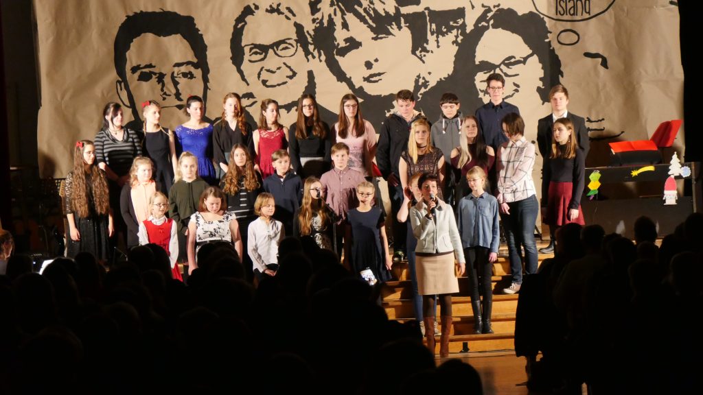 „Die Flucht auf die Weihnachtsinsel“ war das Thema des Abends, welches spielerich von der Theatergruppe des bg aufgeführt wurde, unterbrochen von verschiedenen künstlerischen und musikalischen Darbietungen einzelner oder mehrerer Schüler der Schule.